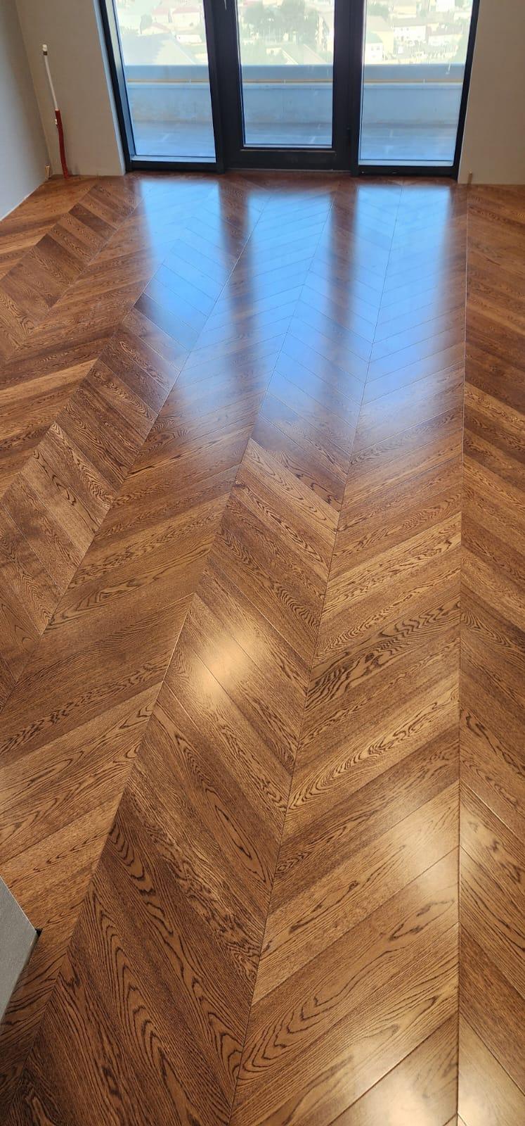 Fransız yolkası düzülüşlü palıd mühəndis lövhəsi parket